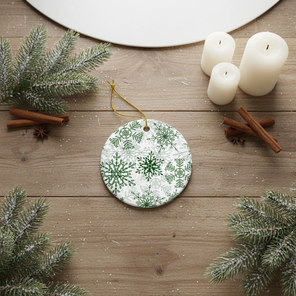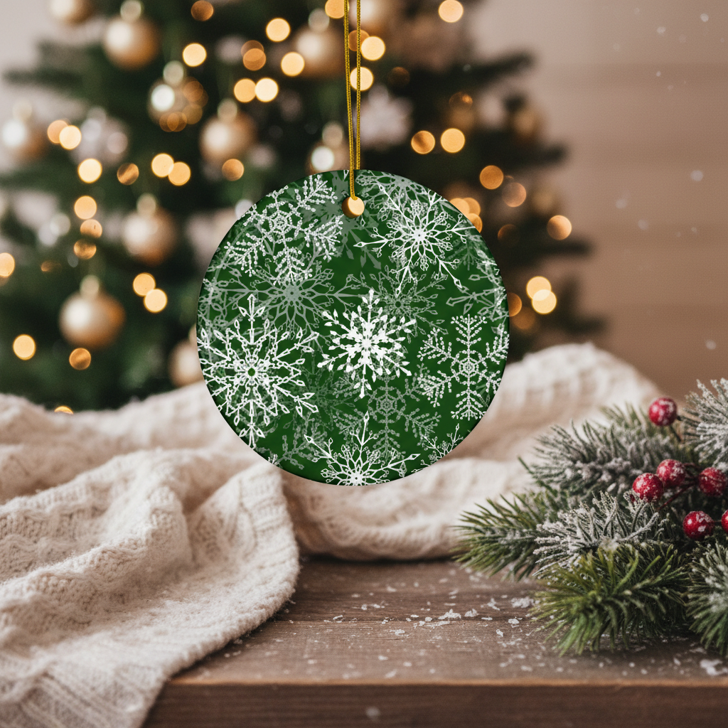 Dark Green Snowflakes Ceramic ornament