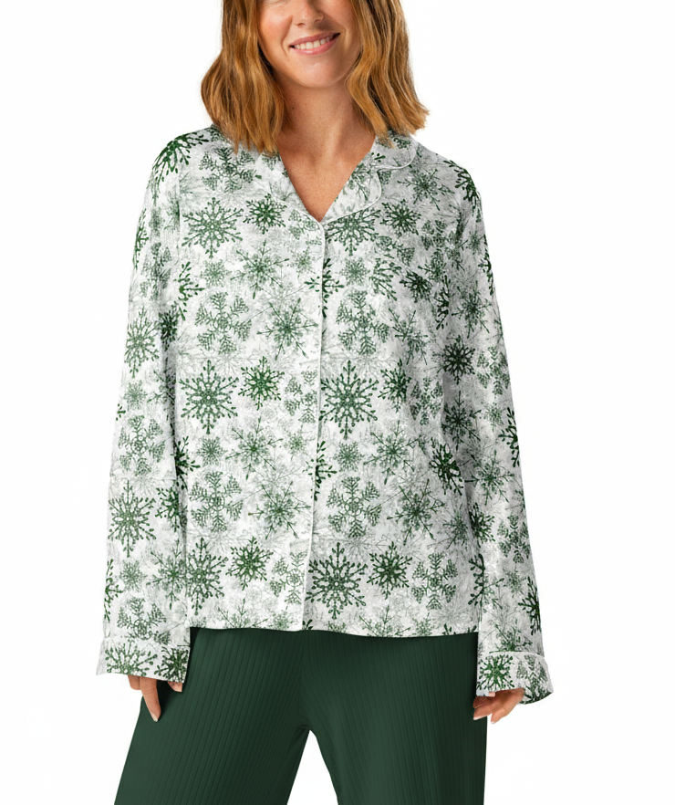 Green Snowflake Women’s long sleeve pajama top